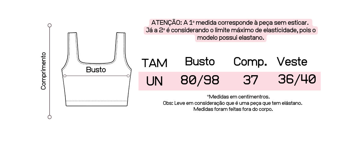 Atente-se as medidas na hora da compra para que receba a sua peça exatamente do tamanho que deseja