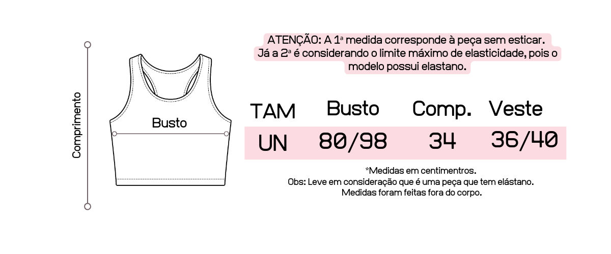 Atente-se as medidas na hora da compra para que receba a sua peça exatamente do tamanho que deseja