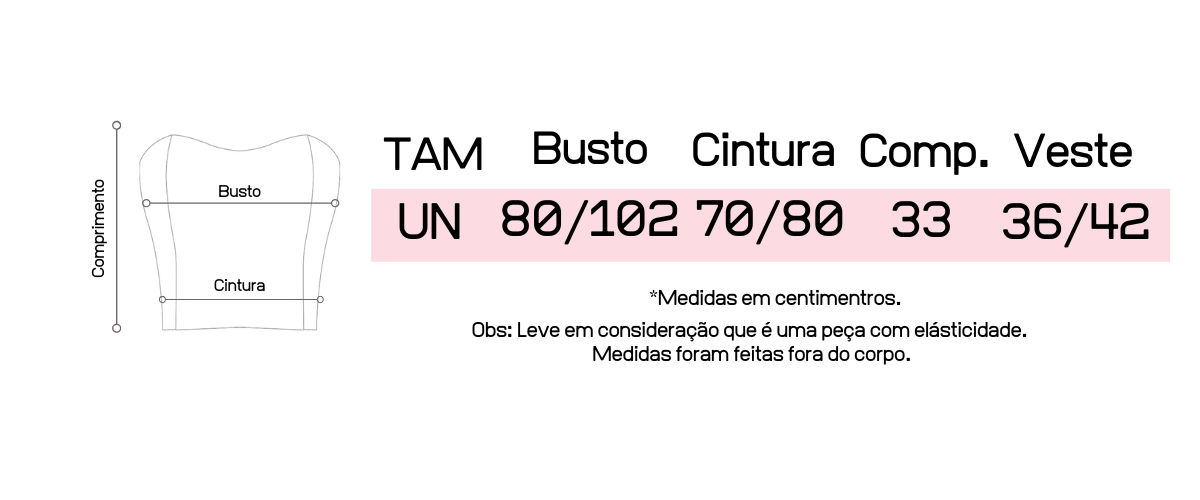 Atente-se as medidas na hora da compra para que receba a sua peça exatamente do tamanho que deseja