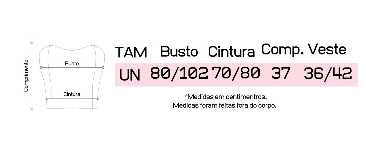 Atente-se as medidas na hora da compra para que receba a sua peça exatamente do tamanho que deseja