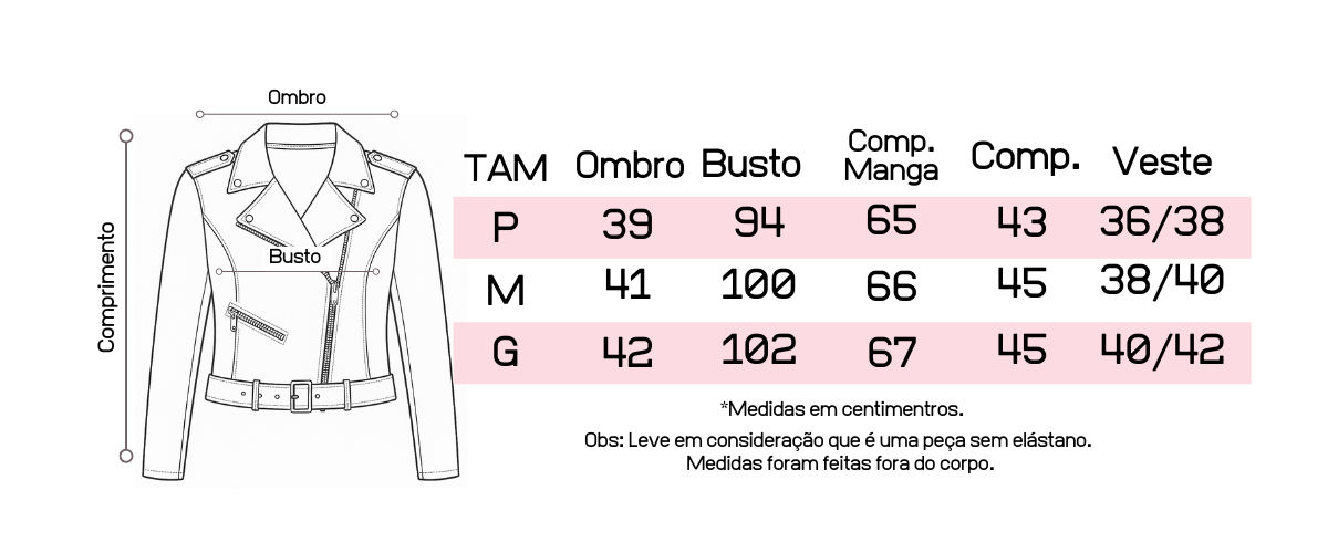 Atente-se as medidas na hora da compra para que receba a sua peça exatamente do tamanho que deseja