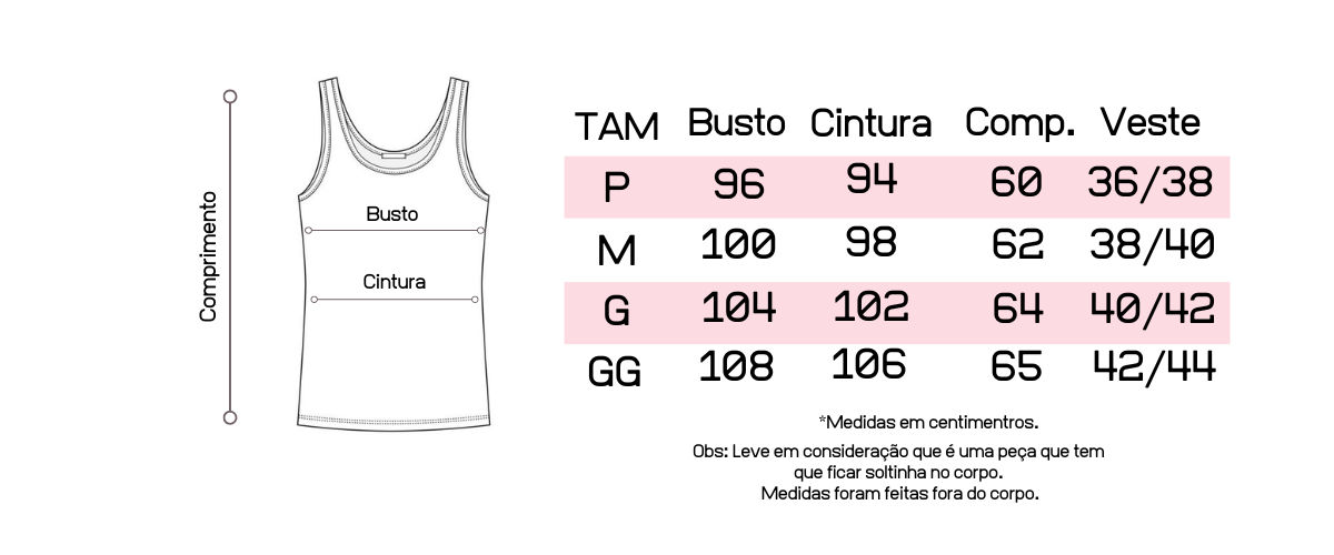 - Sem bojo, seu modelo regata permite que escolha o sutiã de sua prefêrencia;