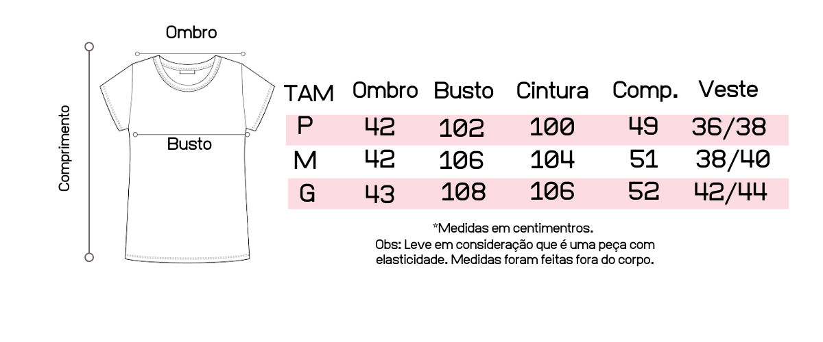 Atente-se as medidas na hora da compra para que receba a sua peça exatamente do tamanho que deseja