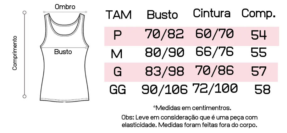 Pode ser usada sem sutiã, trazendo mais praticidade para o dia a dia.