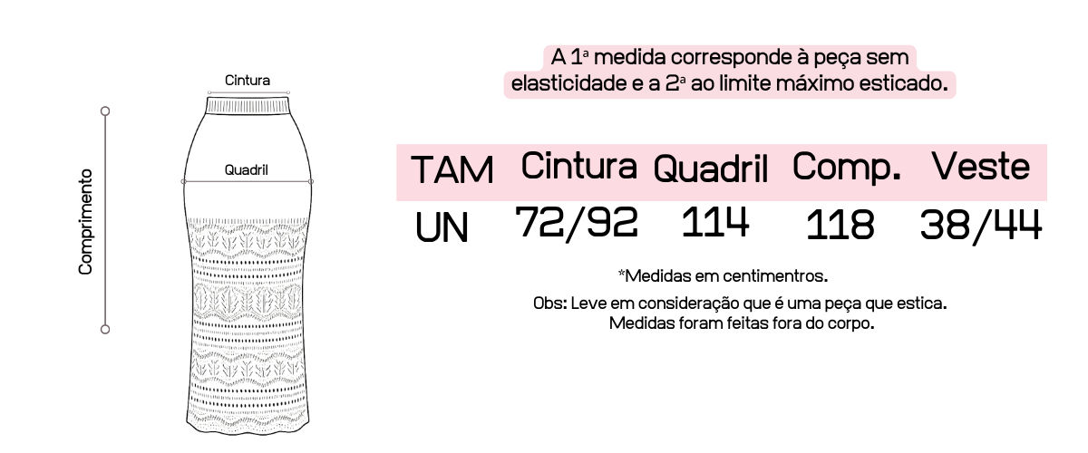 Atente-se as medidas na hora da compra para que receba a sua peça exatamente do tamanho que deseja