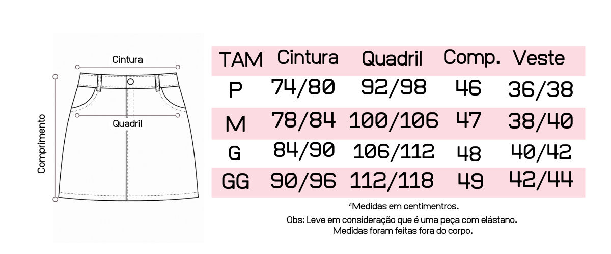 Atente-se as medidas na hora da compra para que receba a sua peça exatamente do tamanho que deseja