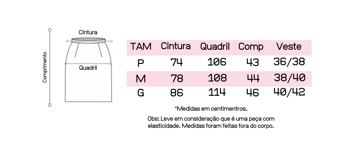 Atente-se as medidas na hora da compra para que receba a sua peça exatamente do tamanho que deseja