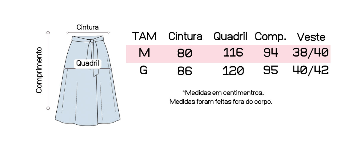 Atente-se as medidas na hora da compra para que receba a sua peça exatamente do tamanho que deseja