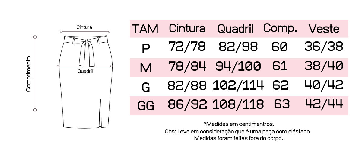 Atente-se as medidas na hora da compra para que receba a sua peça exatamente do tamanho que deseja