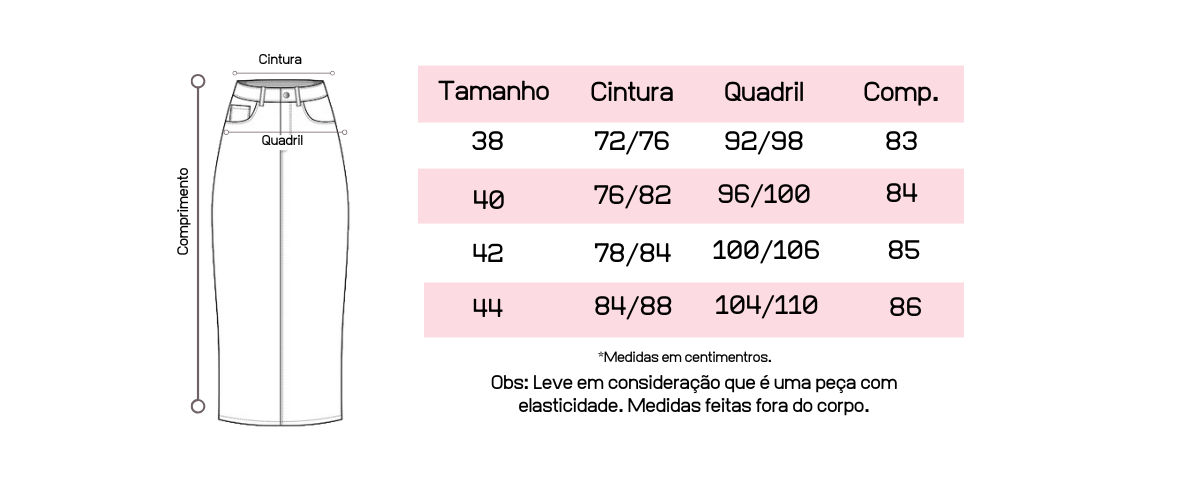 Atente-se as medidas na hora da compra para que receba a sua peça exatamente do tamanho que deseja