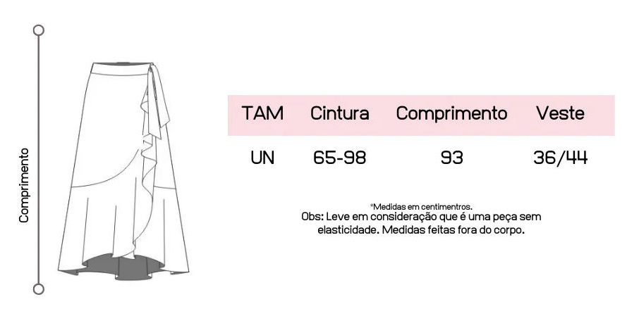 Atente-se as medidas na hora da compra para que receba a sua peça exatamente do tamanho que deseja