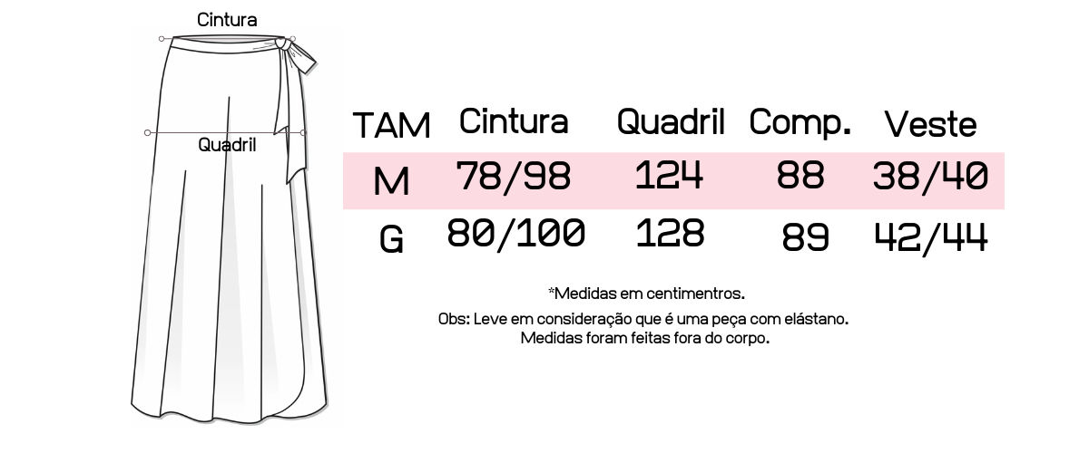 Sendo uma marca nacional, temos como objetivo realçar a beleza dos corpos de mulheres reais brasileiras e entregar peças fiéis aos anúncios. Pelo que todas as nossas coleções são desenvolvidas tendo em conta as nossas particularidades nacionais. Gisele usa tamanhos 40/42 e G de quadril e 44 de busto. Contamos com um time para auxiliar na sua escolha de tamanhos.