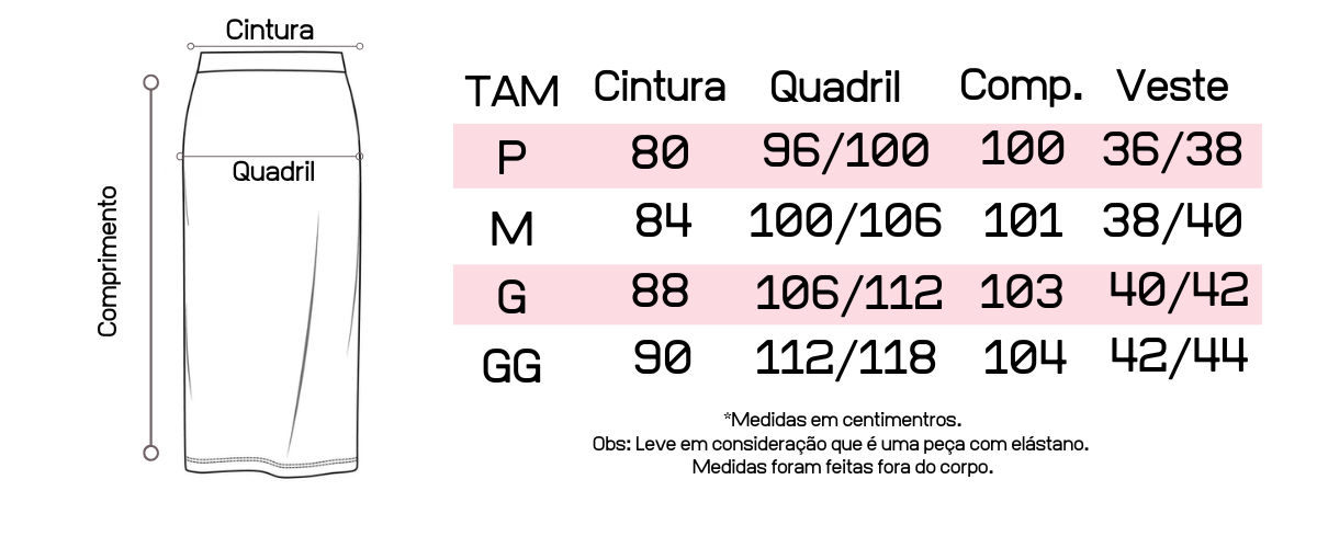 Atente-se as medidas na hora da compra para que receba a sua peça exatamente do tamanho que deseja