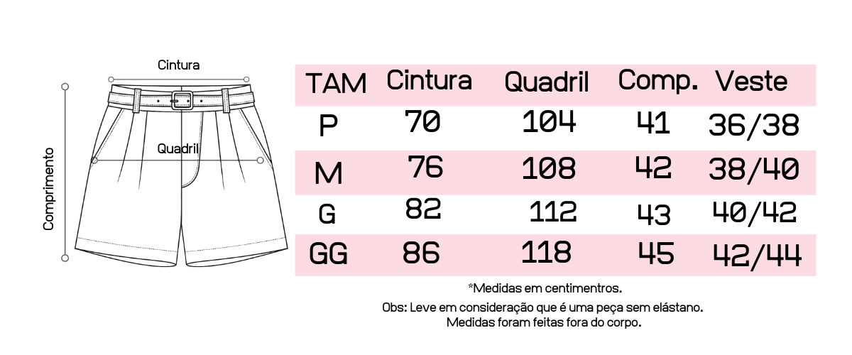 O Short Alice é perfeito para quem busca um visual sofisticado sem abrir mão do conforto no dia a dia. Sua modelagem alfaiataria com corte reto valoriza a silhueta e oferece um caimento impecável.