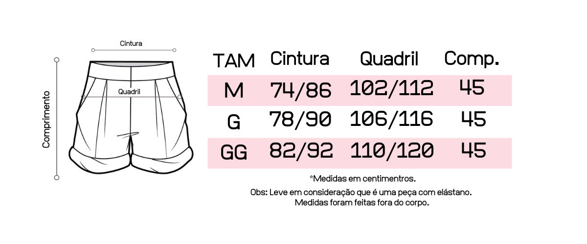 Atente-se as medidas na hora da compra para que receba a sua peça exatamente do tamanho que deseja