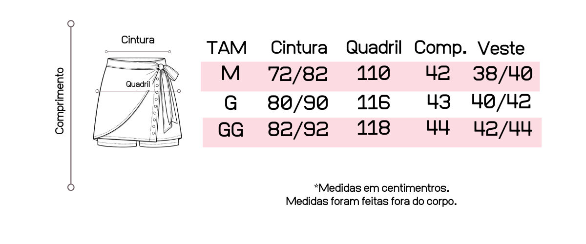 ✔ Observações: o modelo possui short interno, garantindo conforto e segurança ao vestir.