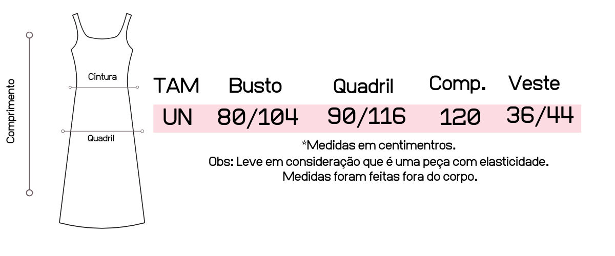 Atente-se as medidas na hora da compra para que receba a sua peça exatamente do tamanho que deseja