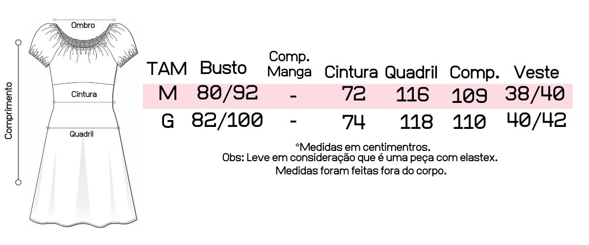 Atente-se as medidas na hora da compra para que receba a sua peça exatamente do tamanho que deseja