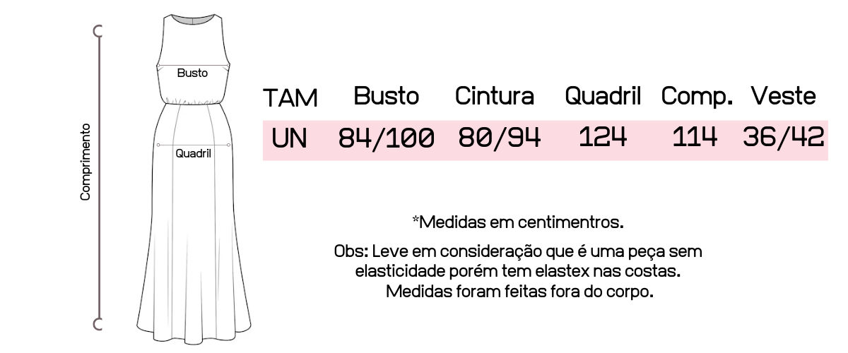 - Para garantir um encaixe perfeito no busto ele possui elástex nas costas;