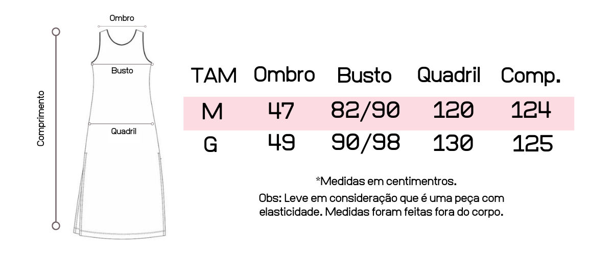- Tecido crepe duna com alta qualidade e durabilidade; garante ótimo caimento e muito conforto ao toque; Não amassa;