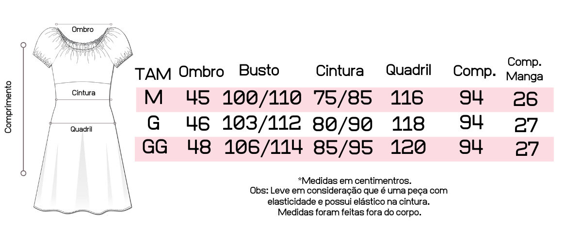 Atente-se as medidas na hora da compra para que receba a sua peça exatamente do tamanho que deseja