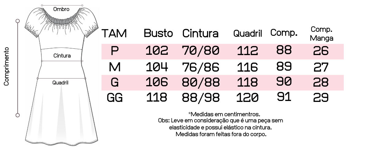 Atente-se as medidas na hora da compra para que receba a sua peça exatamente do tamanho que deseja