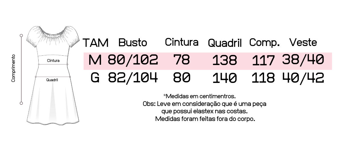 Atente-se as medidas na hora da compra para que receba a sua peça exatamente do tamanho que deseja
