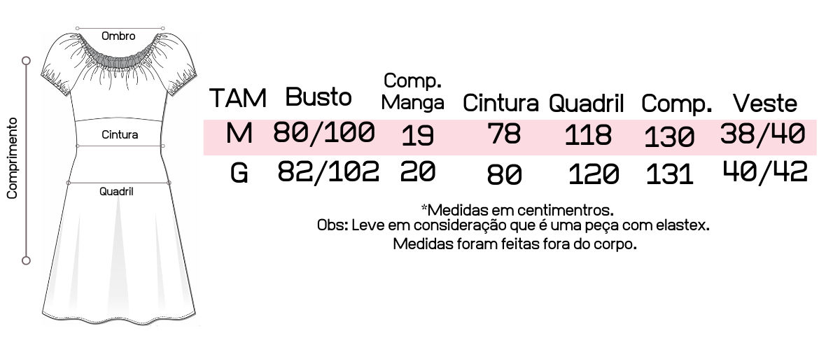 - Parte cima do vestido mais ajustada com a saia mais ampla no quadril, caimento leve e fluído;