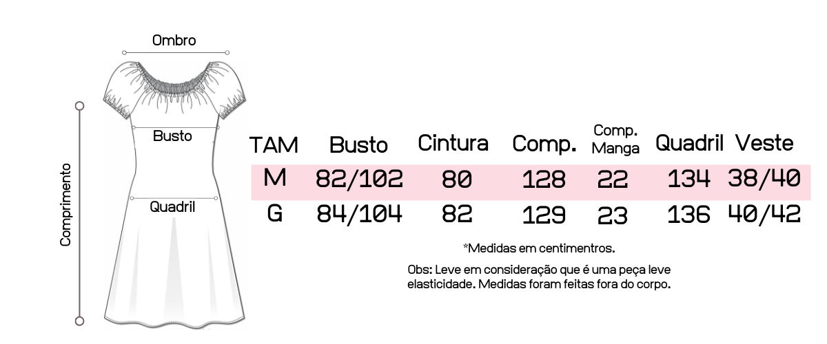 Tabela de medidas: