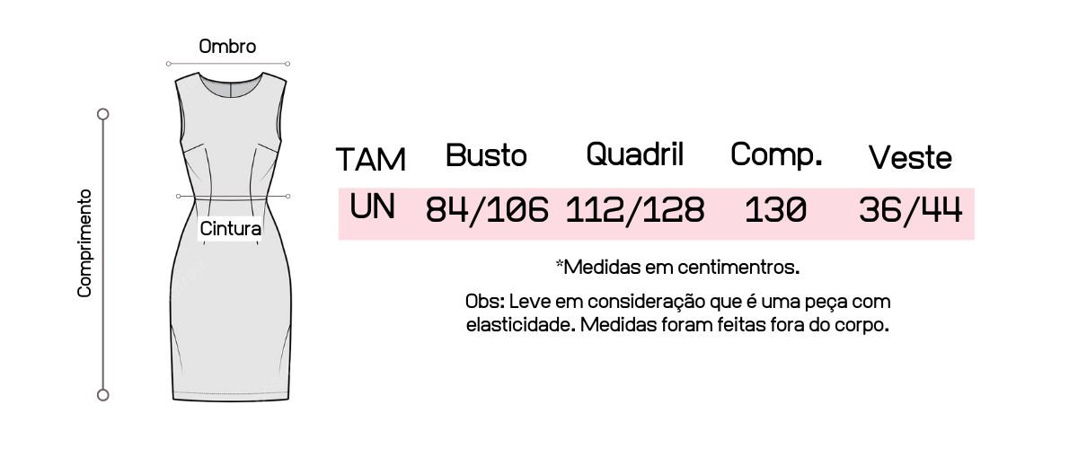 Atente-se as medidas na hora da compra para que receba a sua peça exatamente do tamanho que deseja