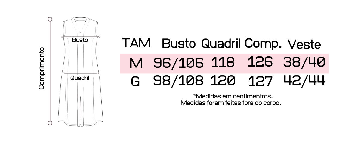 Margem de variação nas medidas: 1–2 cm.