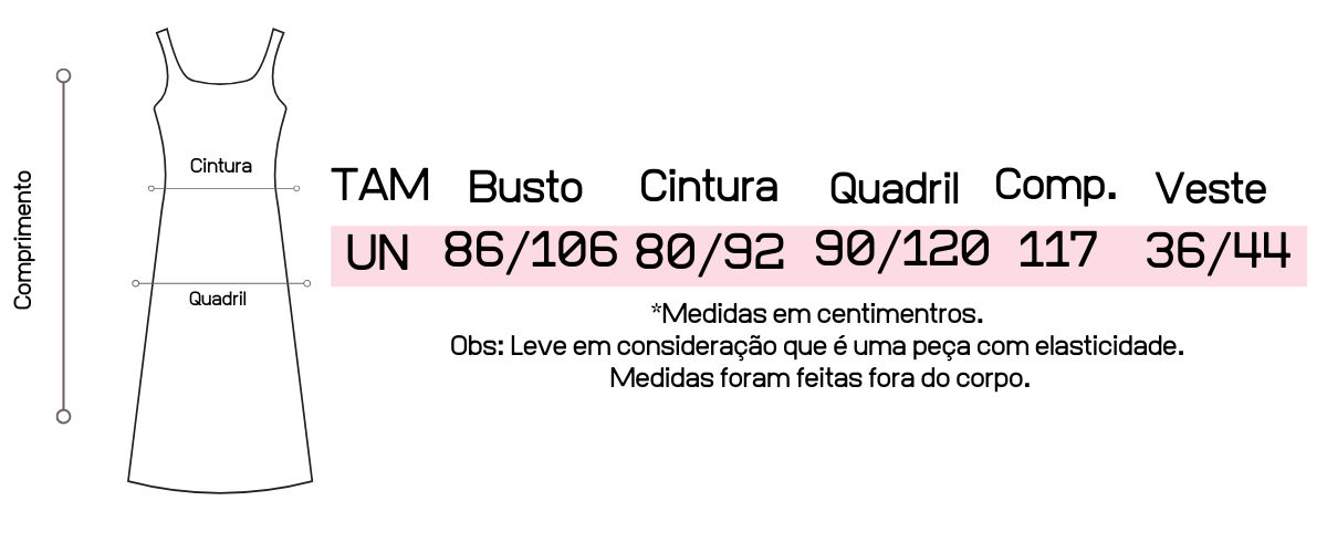 Atente-se as medidas na hora da compra para que receba a sua peça exatamente do tamanho que deseja